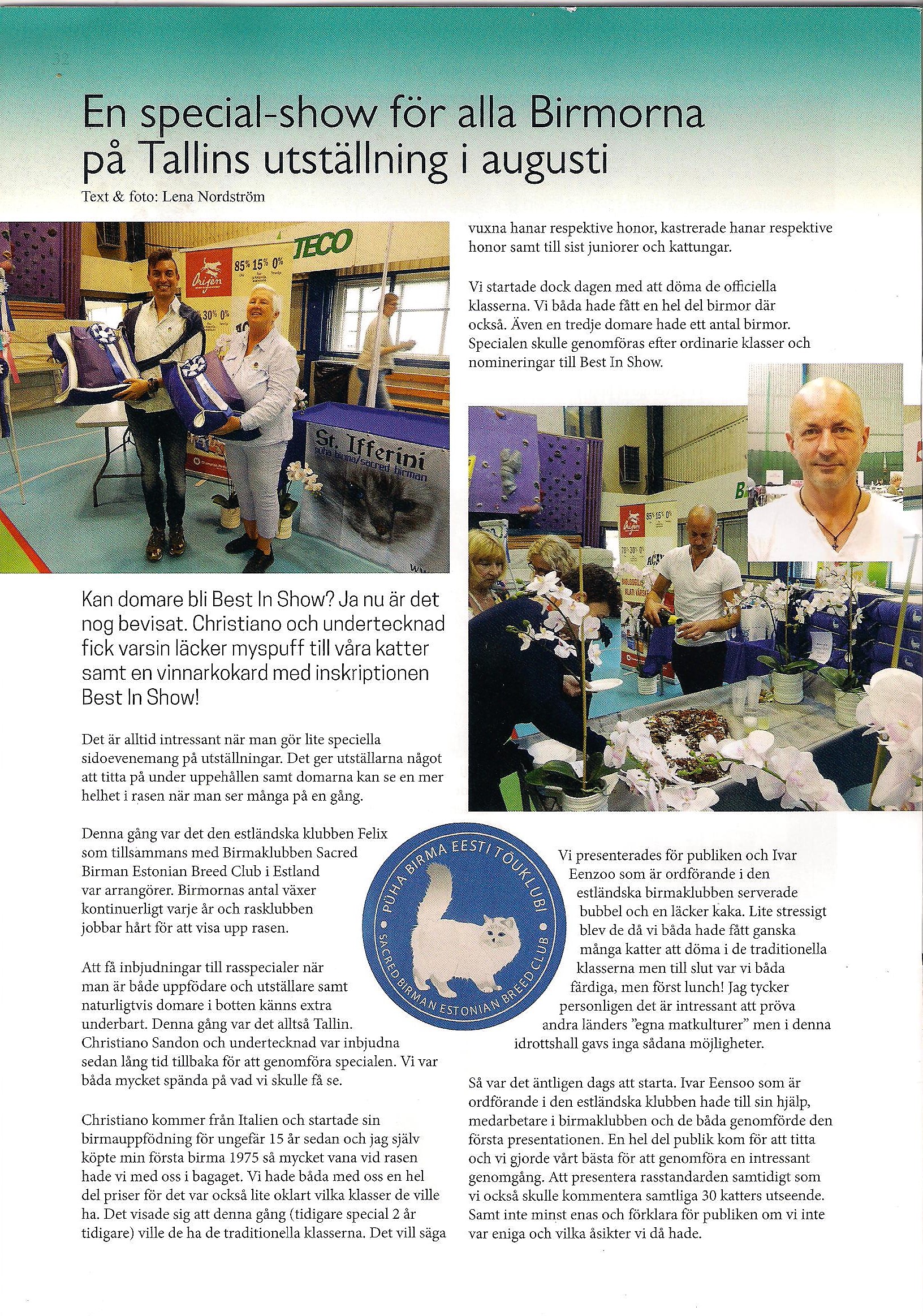 Swedens’ Sacred Birman magazine wrote about our summer special show.